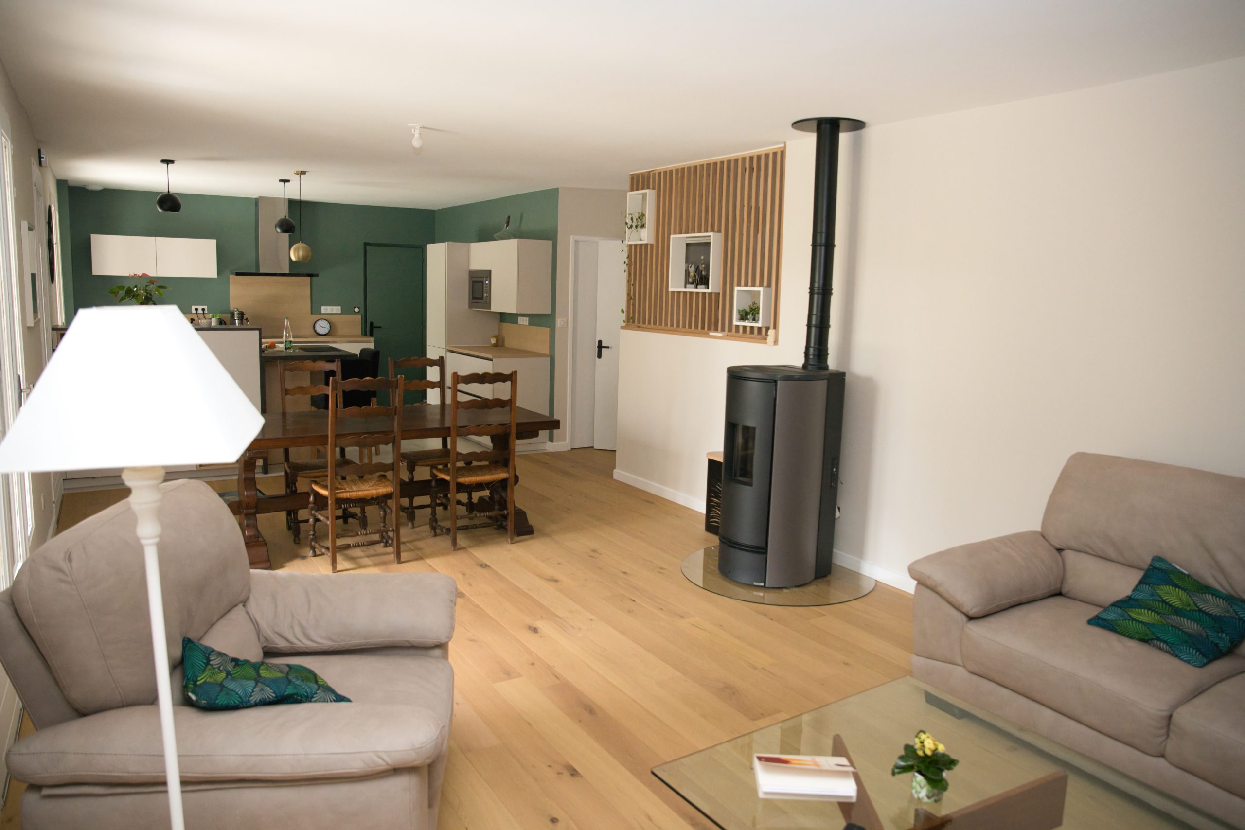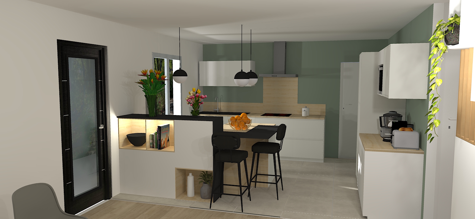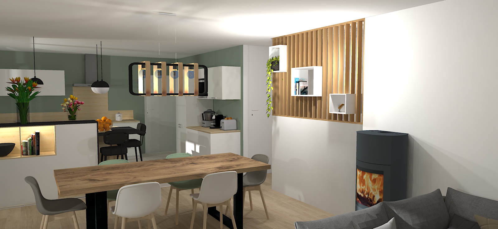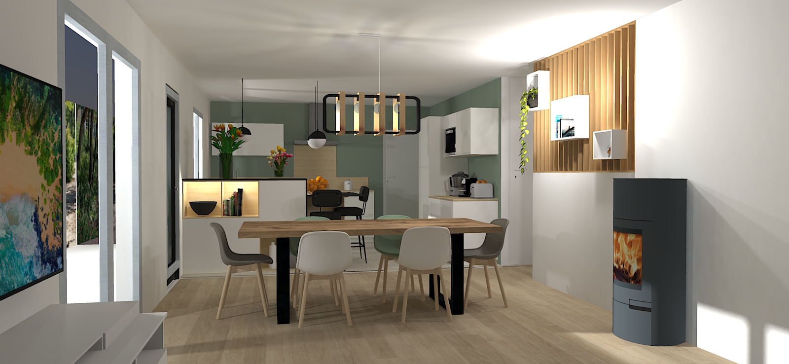 L’objectif etait donc de concevoir un nouvel espace regroupant la cuisine, la salle à manger et le salon, dans le but d’apporter une touche de modernité, de luminosité et de couleur à cet intérieur réinventé.