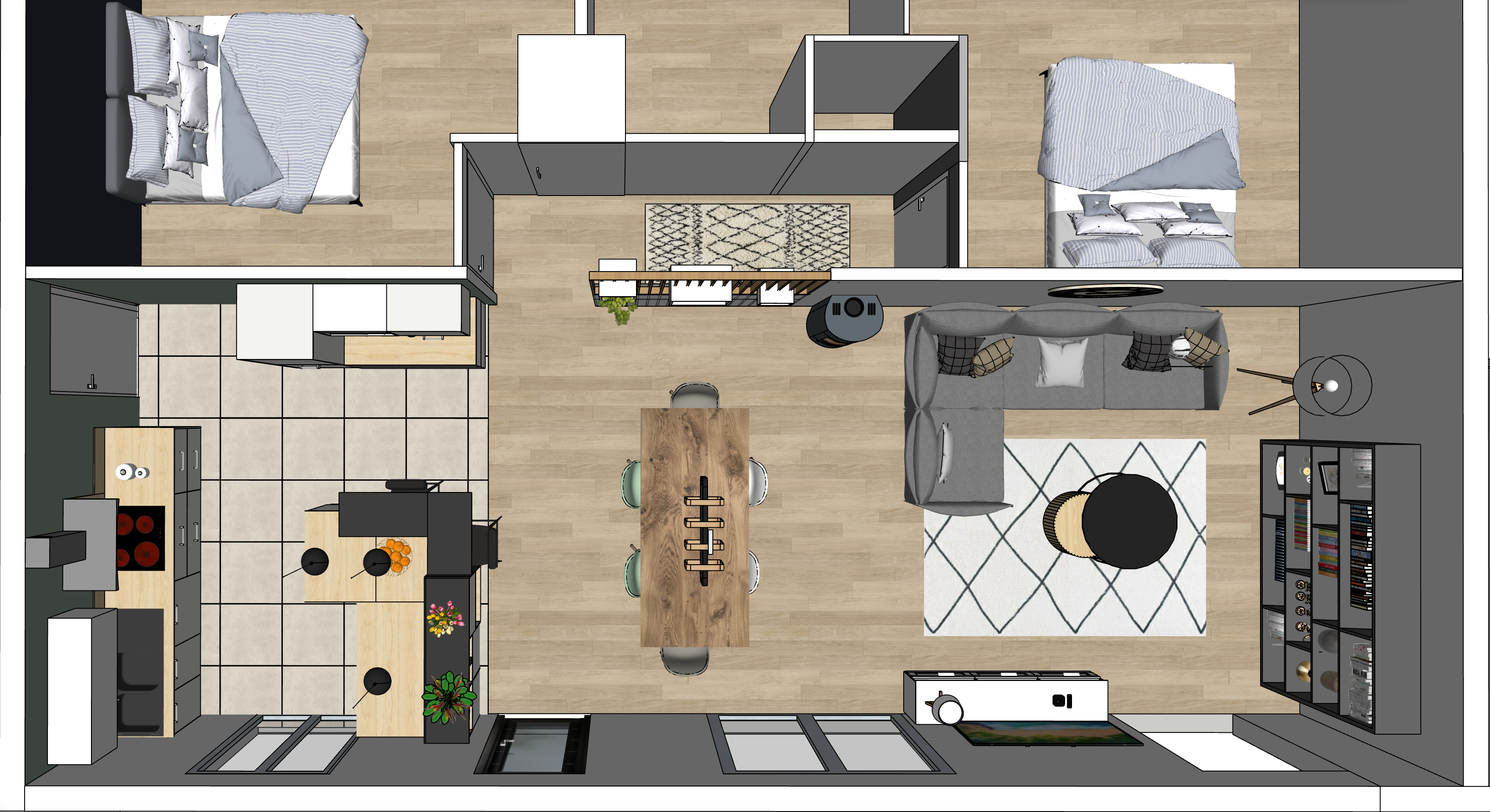 Profitant de cette rénovation, elle a décidé de repenser complètement l’intérieur de sa maison, envisageant la suppression de certaines cloisons afin de créer un espace de vie spacieux et ouvert.