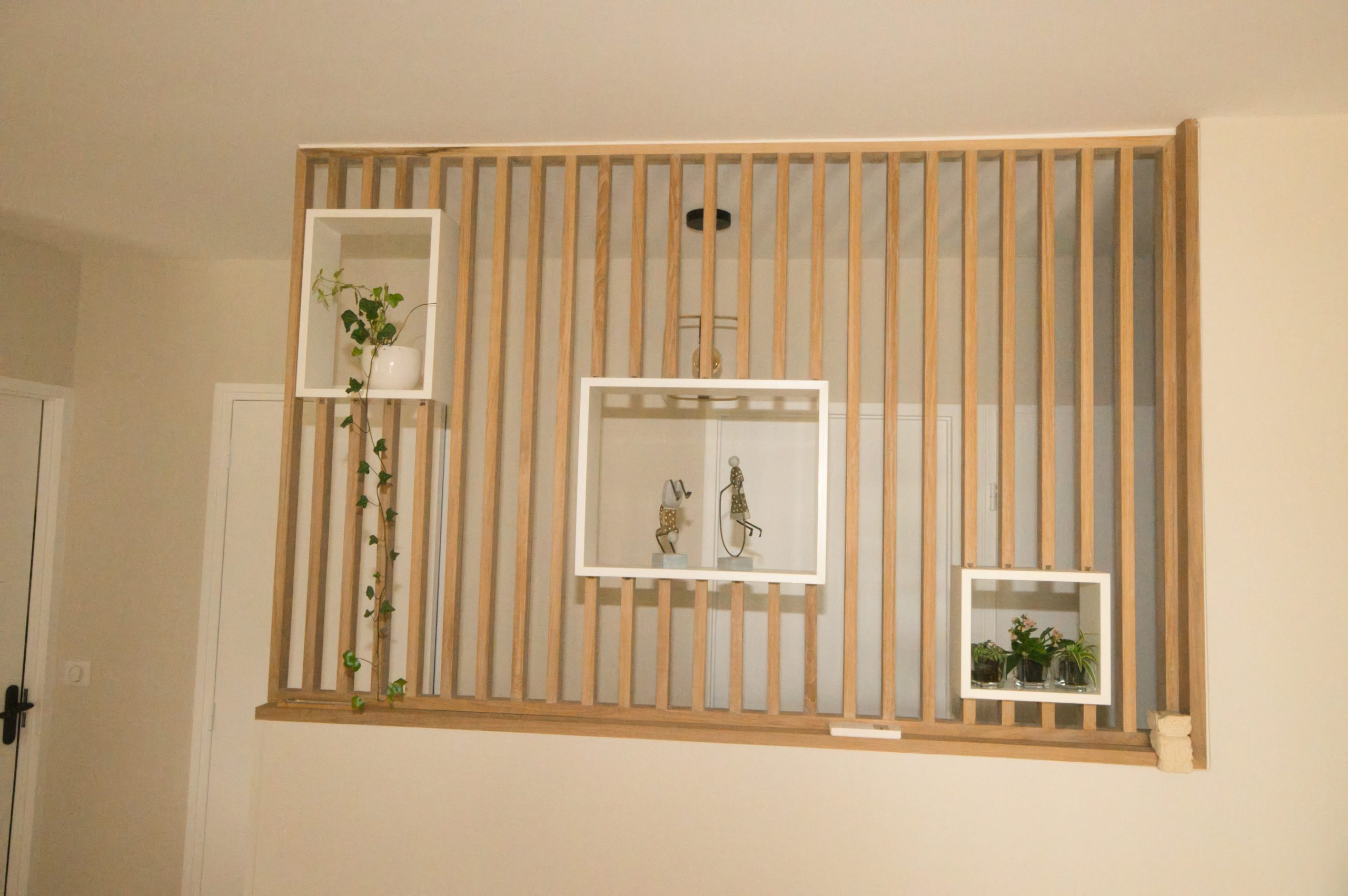 En plus de dynamiser la pièce, ce claustra permet de laisser passer la lumière dans le couloir initialement très sombre